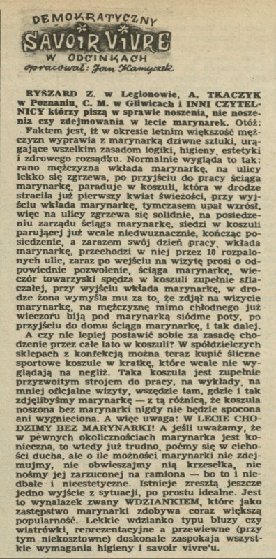 Archiwum / Demokratyczny savoir-vivre nr 272 (26/1950) 27/49 Podziel się Tytuł Demokratyczny savoir-vivre Autor Jan Kamyczek Rubryka Demokratyczny savoir-vivre Artykuł z numeru 272 (26/1950) Data wydania 25 czerwca 1950