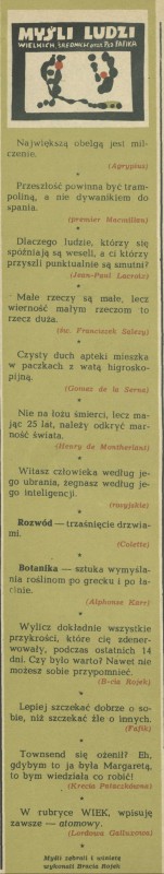 Archiwum / Myśli nr 762 (46/1959) 92662/123969 Podziel się Tytuł Myśli ludzi wielkich, średnich i psa Fafika Rubryka Myśli Artykuł z numeru 762 (46/1959) Data wydania 15 listopada 1959