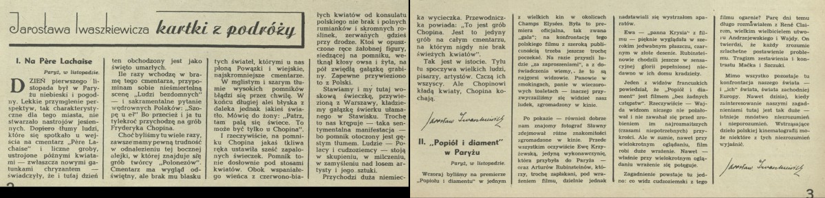 Archiwum / korespondencja własna "Przekroju" nr 763 (47/1959) 02/297 Podziel się Tytuł Kartki z podróży Autor Jarosław Iwaszkiewicz Rubryka korespondencja własna "Przekroju" Artykuł z numeru 763 (47/1959) Data wydania 22 listopada 1959 Tagi Paryż Francja