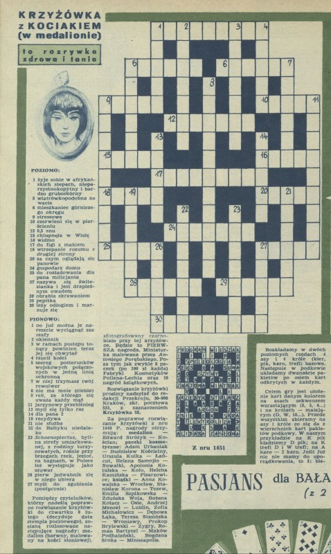 Archiwum / Krzyżówka z kociakiem nr 1452 (05/1973) 113/1084 Podziel się Tytuł Krzyżówka z kociakiem Rubryka Krzyżówka z kociakiem Artykuł z numeru 1452 (5/1973) Data wydania 4 lutego 1973