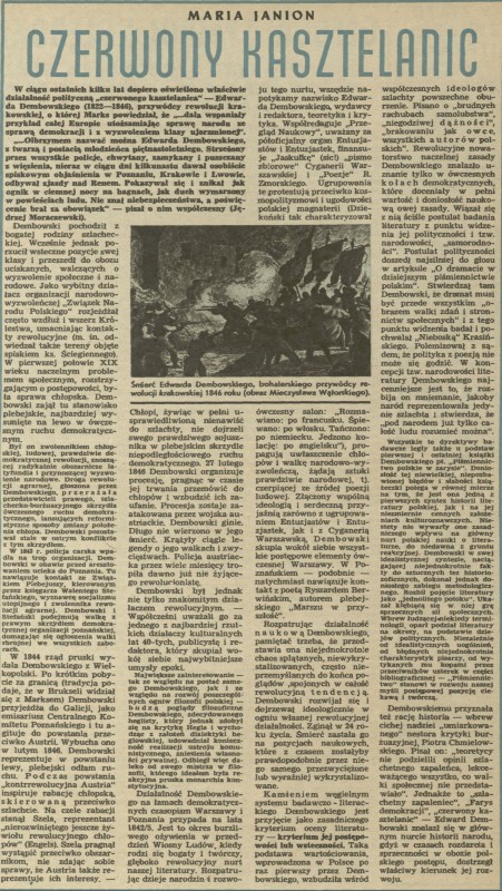 Archiwum / Artykuł nr 273 (27/1950) 8576/123969 Podziel się Tytuł Czerwony kasztelanic Autor Maria Janion Kategoria Artykuł Artykuł z numeru 273 (27/1950) Data wydania 2 lipca 1950 Tagi historia Demobowski