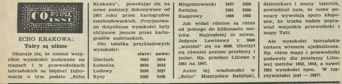 Archiwum / Co piszą inni nr 905 (32/1962) 52/111 Podziel się Tytuł Co piszą inni Rubryka Co piszą inni Artykuł z numeru 905 (32/1962) Data wydania 12 sierpnia 1962 Tagi Tatry