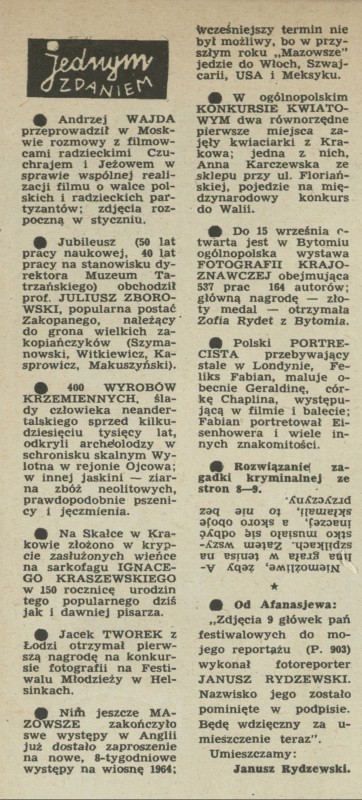 Archiwum / Jednym zdaniem nr 905 (32/1962) 37869/123969 Podziel się Tytuł Jednym zdaniem Rubryka Jednym zdaniem Artykuł z numeru 905 (32/1962) Data wydania 12 sierpnia 1962