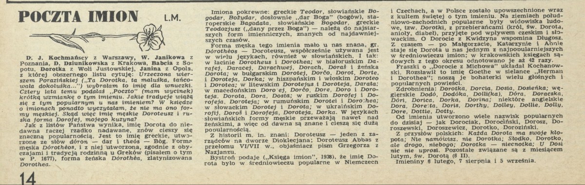 Archiwum / Poczta imion nr 1687 (32/1977) 52245/121061 Podziel się Tytuł Poczta imion Rubryka Poczta imion Artykuł z numeru 1687 (32/1977) Data wydania 7 sierpnia 1977