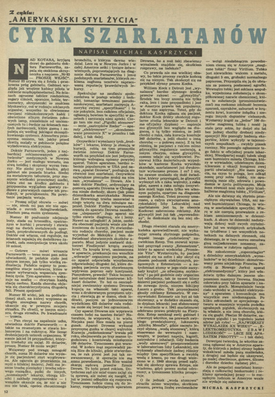 Archiwum / Społeczeństwo nr 273 (27/1950) 1/1 Podziel się Tytuł Z cyklu: „Amerykański styl życia” - Cyrk szarlatanów Autor Michał Kasprzycki Kategoria Społeczeństwo Artykuł z numeru 273 (27/1950) Data wydania 2 lipca 1950 Tagi woda atomowa USA