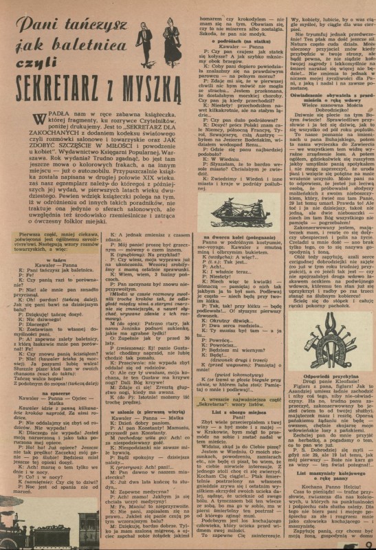 Archiwum / Opowiadanie nr 792 (24/1960) 04/84 Podziel się Tytuł Pani tańczysz jak baletnica czyli sekretarz z myszką Kategoria Opowiadanie Artykuł z numeru 792 (24/1960) Data wydania 12 czerwca 1960