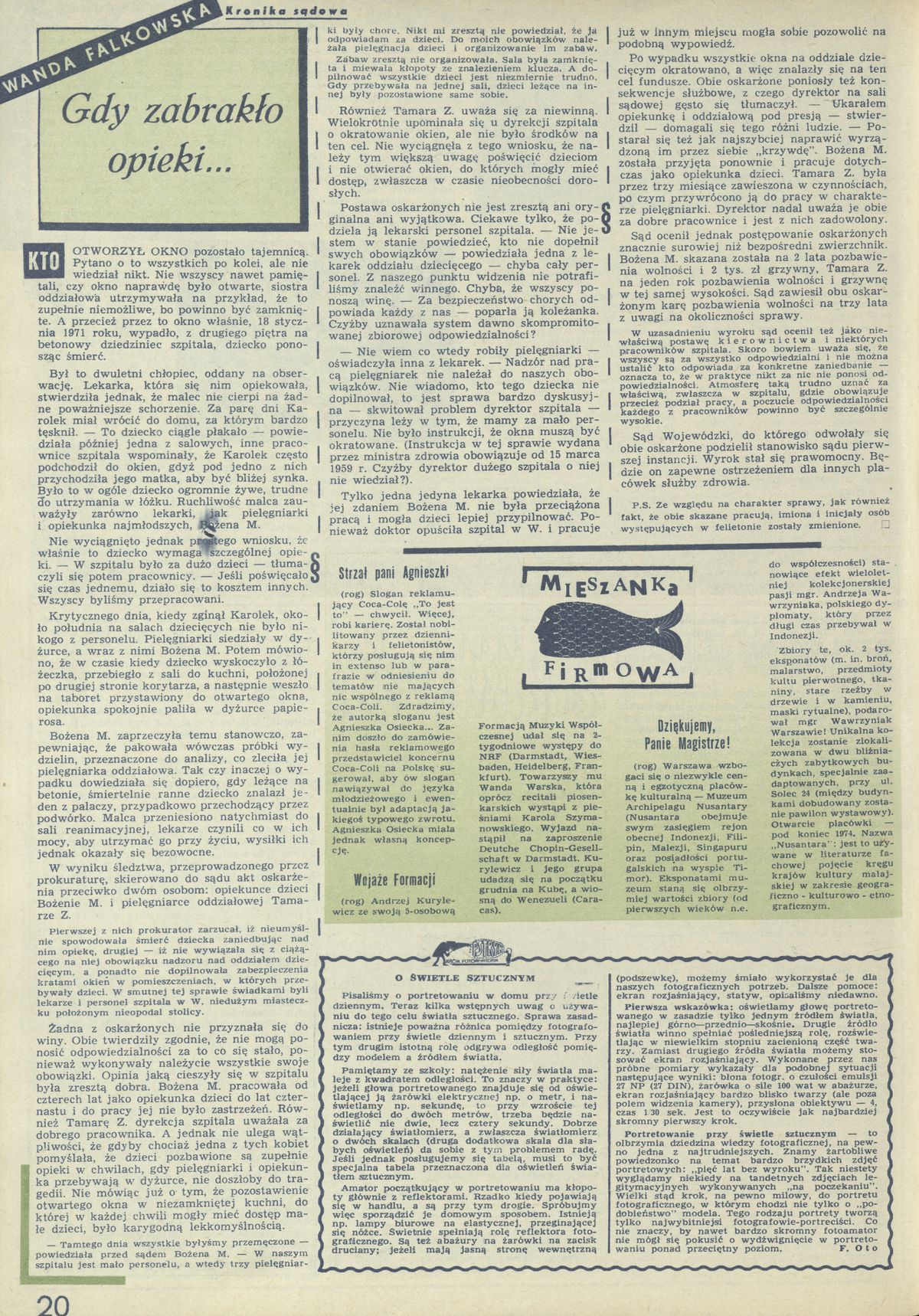 Archiwum / Kronika sądowa nr 1436 (42/1972) 58734/123969 Podziel się Tytuł Kronika sądowa: gdy zabrakło opieki Autor Wanda Falkowska Rubryka Kronika sądowa Artykuł z numeru 1436 (42/1972) Data wydania 15 października 1972 Tagi wypadek nieuwaga ranne dziecko