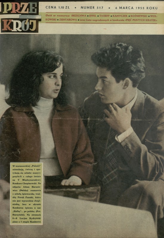 Archiwum / Okładki Przekroju nr 517 (10/1955) 37/51 Podziel się Tytuł Okładka Autor Roman Burzyński Rubryka Okładki Przekroju Artykuł z numeru 517 (10/1955) Data wydania 6 marca 1955 Tagi konkurs chopinowski konkurs pianistyczny Harasiewicz Panahi muzycy artyści "Polonia"