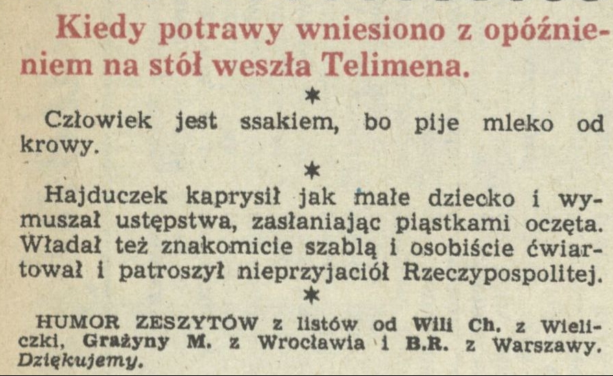 Archiwum / Humor zeszytów szkolnych nr 2068 (04/1985) 84950/123969 Podziel się Tytuł Humor z zeszytów Rubryka Humor zeszytów szkolnych Artykuł z numeru 2068 (4/1985) Data wydania 27 stycznia 1985 Tagi humor zeszytów