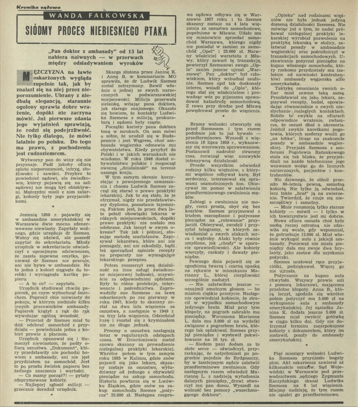 Archiwum / Kronika sądowa nr 810 (42/1960) 84/844 Podziel się Tytuł Siódmy proces niebieskiego ptaka Autor Wanda Falkowska Rubryka Kronika sądowa Artykuł z numeru 810 (42/1960) Data wydania 16 października 1960