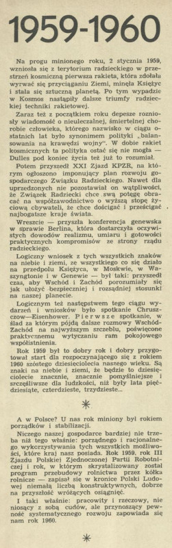Archiwum / Przekrój tygodnia nr 769 (01/1960) 31474/123969 Podziel się Tytuł 1959-1960 Rubryka Przekrój tygodnia Artykuł z numeru 769 (1/1960) Data wydania 3 stycznia 1960 Tagi podsumowanie roku ZSRR