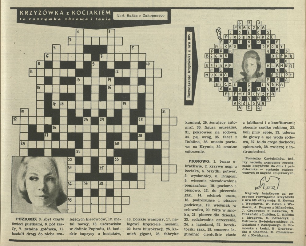Archiwum / Krzyżówka z kociakiem nr 808 (40/1960) 116/1602 Podziel się Tytuł Krzyżówka z kociakiem Rubryka Krzyżówka z kociakiem Artykuł z numeru 808 (40/1960) Data wydania 2 października 1960