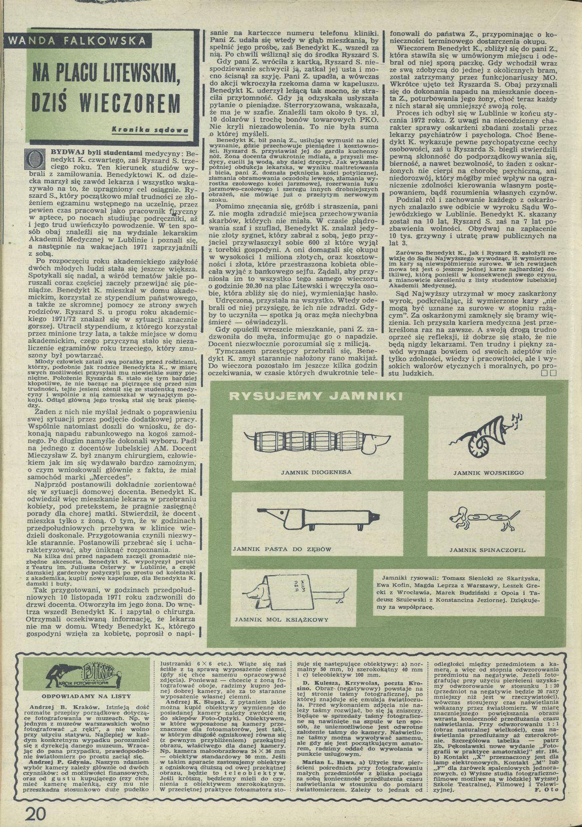 Archiwum / Kronika sądowa nr 1437 (43/1972) 58793/123969 Podziel się Tytuł Kronika sądowa: na Placu Litewskim, dziś wieczorem Autor Wanda Falkowska Rubryka Kronika sądowa Artykuł z numeru 1437 (43/1972) Data wydania 22 października 1972 Tagi włamanie pobicie studenci medycyny