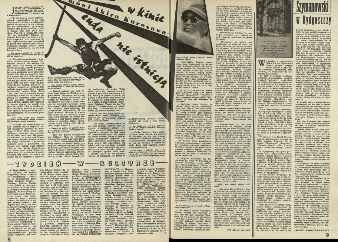 Archiwum / Film nr 1919 (05/1982) 31/46 Podziel się Tytuł Cuda nie istnieją - wywiad z Akiro Kurosawą Rubryka Film Artykuł z numeru 1919 (5/1982) Data wydania 21 marca 1982 Tagi kino współczesne