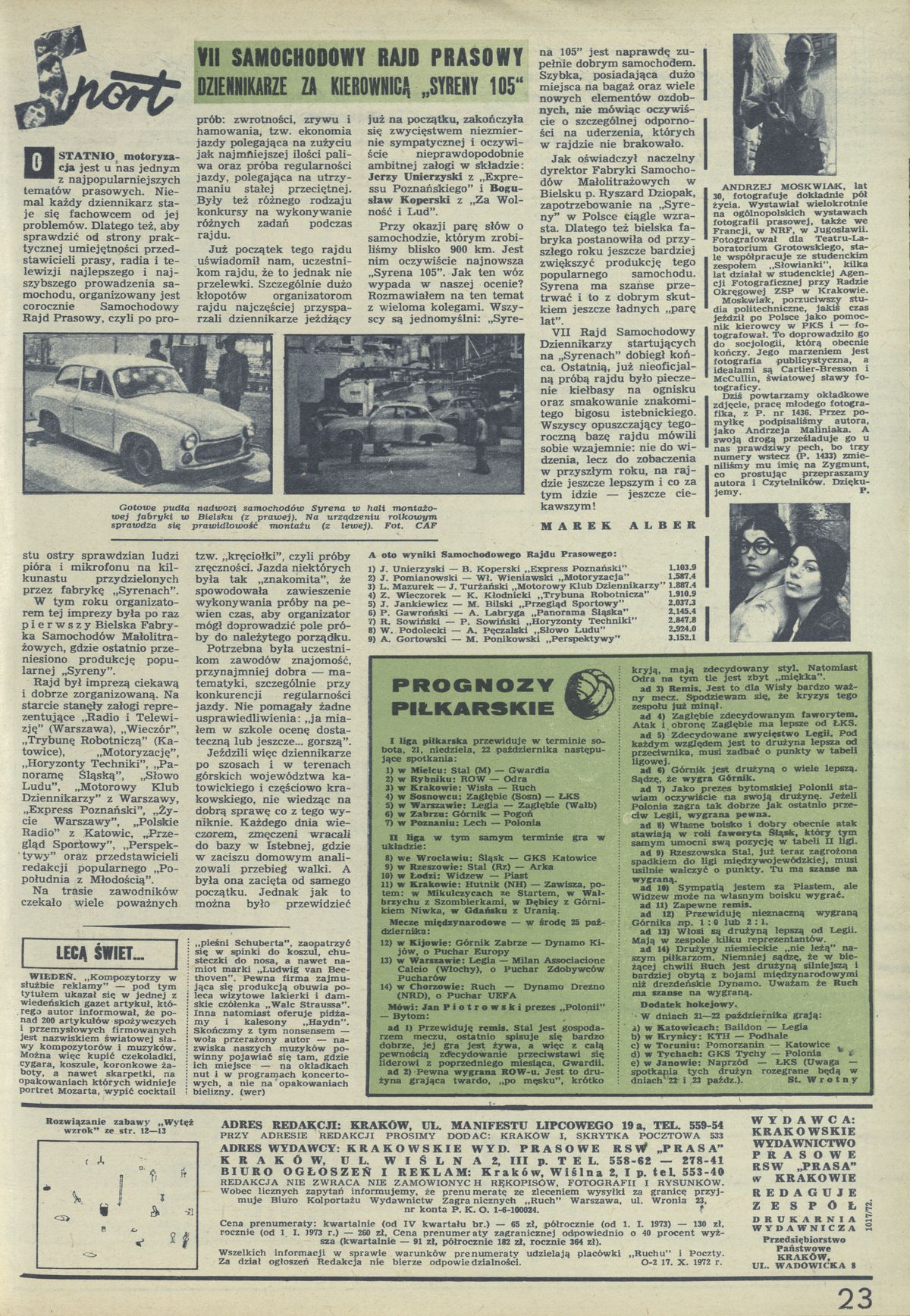 Archiwum / Sport nr 1437 (43/1972) 18/78 Podziel się Tytuł VII Samochodowy Rajd Prasowy. Dziennikarze za kierownicą Syreny 105 Autor Marek Alber Rubryka Sport Artykuł z numeru 1437 (43/1972) Data wydania 22 października 1972 Tagi rajd samochodowy dziennikarze sport