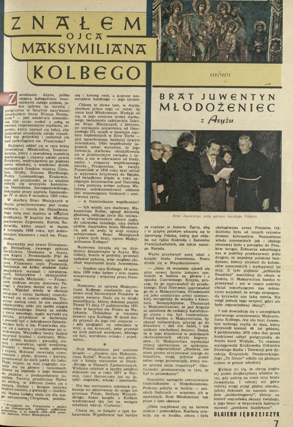 Archiwum / Wywiad nr 1891 (27/1981) 56/73 Podziel się Tytuł Znałem ojca Maksymiliana Kolbego Autor Olgierd Jędrzejczyk Kategoria Wywiad Artykuł z numeru 1891 (27/1981) Data wydania 5 lipca 1981 Tagi brat Juwentyn Młodożeniec z Asyżu Maksymilian Kolbe Oświęcim