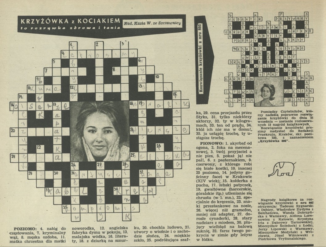 Archiwum / Krzyżówka z kociakiem nr 806 (38/1960) 12/48 Podziel się Tytuł Krzyżówka z kociakiem Rubryka Krzyżówka z kociakiem Artykuł z numeru 806 (38/1960) Data wydania 18 września 1960