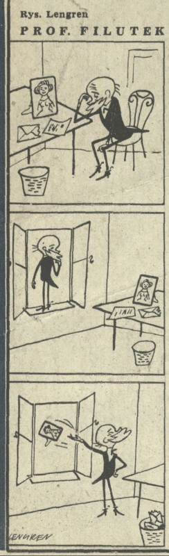 Archiwum / Profesor Filutek nr 812 (44/1960) 07/14 Podziel się Tytuł Prof. Filutek Autor Zbigniew Lengren Rubryka Profesor Filutek Artykuł z numeru 812 (44/1960) Data wydania 30 października 1960 Tagi żart rysunkowy nieszczęśliwa miłość