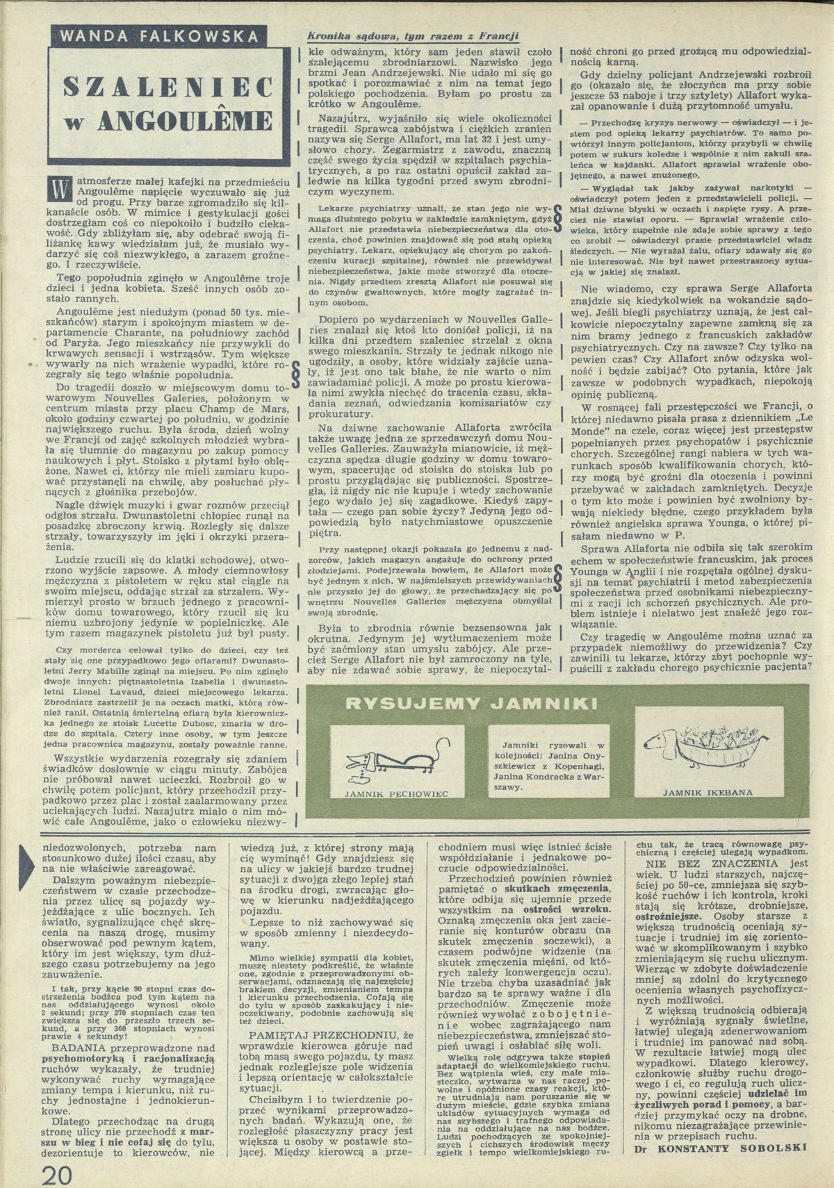 Archiwum / Kronika sądowa nr 1438 (44/1972) 58852/123969 Podziel się Tytuł Kronika sądowa, tym razem z Francji: szaleniec z Angoulême Autor Wanda Falkowska Rubryka Kronika sądowa Artykuł z numeru 1438 (44/1972) Data wydania 29 października 1972 Tagi zabójstwo strzały z pistoletu szaleniec