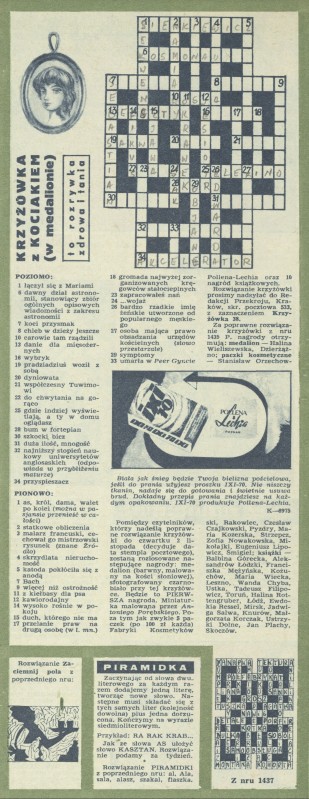 Archiwum / Krzyżówka z kociakiem nr 1438 (44/1972) 44/52 Podziel się Tytuł Krzyżówka z kociakiem (w medalionie) Rubryka Krzyżówka z kociakiem Artykuł z numeru 1438 (44/1972) Data wydania 29 października 1972 Tagi krzyżówka rozrywka