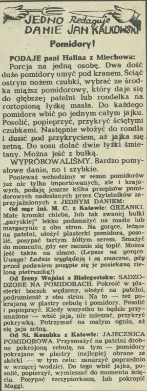 Archiwum / Jedno danie nr 906 (33/1962) 69/1488 Podziel się Tytuł Pomidory! Autor Jan Kalkowski Rubryka Jedno danie Artykuł z numeru 906 (33/1962) Data wydania 19 sierpnia 1962 Tagi gastronomia kulinaria przepis kulinarny jajka grzanki jajecznica