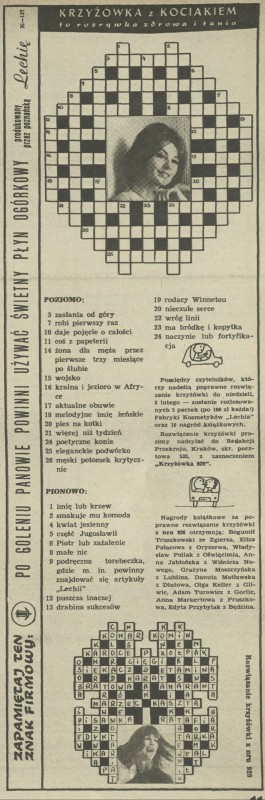 Archiwum / Krzyżówka z kociakiem nr 929 (04/1963) 275/292 Podziel się Tytuł Krzyżówka z kociakiem Rubryka Krzyżówka z kociakiem Artykuł z numeru 929 (4/1963) Data wydania 27 stycznia 1963