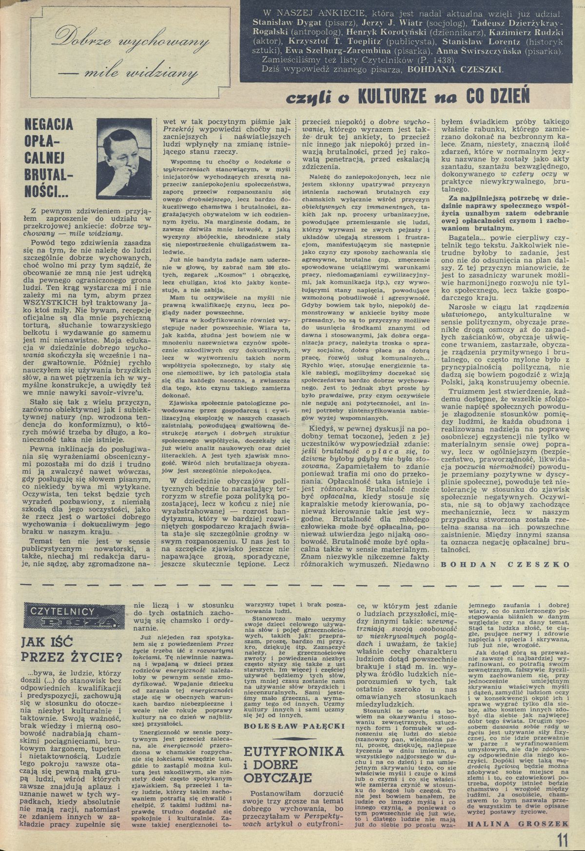 Archiwum / Społeczeństwo nr 1441 (47/1972) 58996/123969 Podziel się Tytuł Dobrze wychowany - mile widziany, czyli o kulturze na co dzień Kategoria Społeczeństwo Artykuł z numeru 1441 (47/1972) Data wydania 19 listopada 1972 Tagi dobre obyczaje kultura osobista wychowanie