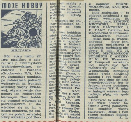 Archiwum / Różności nr 1441 (47/1972) 12/92 Podziel się Tytuł Moje hobby: militaria Autor Zbigniew Turek Kategoria Różności Artykuł z numeru 1441 (47/1972) Data wydania 19 listopada 1972 Tagi hobby militaria różności