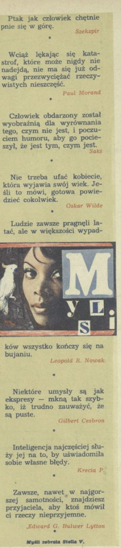 Archiwum / Myśli nr 1456 (09/1973) 184/1084 Podziel się Tytuł Myśli Autor Stella Varcaby Rubryka Myśli Artykuł z numeru 1456 (9/1973) Data wydania 4 marca 1973 Tagi cytaty myśli aforyzmy