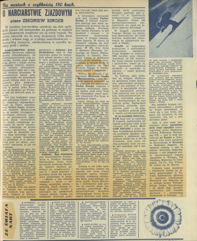 Archiwum / Artykuł nr 1456 (09/1973) 103/169 Podziel się Tytuł Na nartach z szybkością 180 km/h. O narciarstwie zjazdowym Autor Zbigniew Ringer Kategoria Artykuł Artykuł z numeru 1456 (9/1973) Data wydania 4 marca 1973