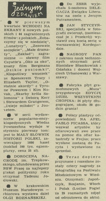Archiwum / Jednym zdaniem nr 770 (02/1960) 31565/123969 Podziel się Tytuł Jednym zdaniem Rubryka Jednym zdaniem Artykuł z numeru 770 (2/1960) Data wydania 10 stycznia 1960