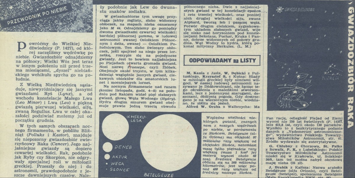 Archiwum / Nauka nr 1441 (47/1972) 38/176 Podziel się Tytuł Przewodnik po niebie. Gwiazdozbiór Raka Autor L.M. Kategoria Nauka Artykuł z numeru 1441 (47/1972) Data wydania 19 listopada 1972 Tagi astronomia gwiazdozbiory gwiazdozbiór Raka