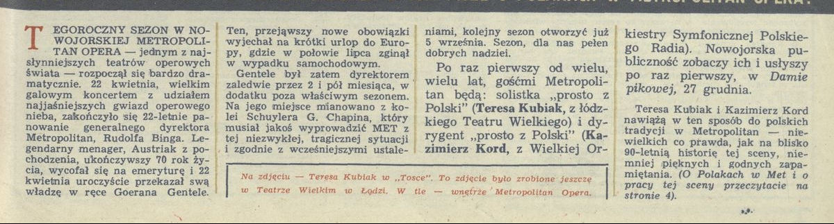 Archiwum / Korespondencja nr 1442 (48/1972) 7/8 Podziel się Tytuł Lucjan Kydryński w korespondencji z USA pisze o Polakach w Metropolitan Opera Autor Lucjan Kydryński Kategoria Korespondencja Artykuł z numeru 1442 (48/1972) Data wydania 26 listopada 1972 Tagi Metropolitan Opera Teresa Kubiak Teresa Żylis-Gara
