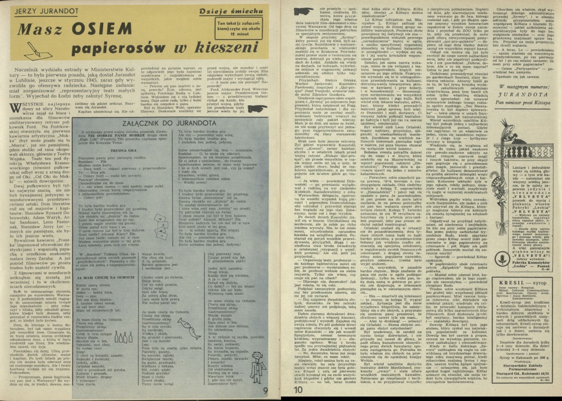 Archiwum / Proza nr 726 (10/1959) 18/98 Podziel się Tytuł Masz osiem papierosów w kieszeni Autor Jerzy Jurandot Kategoria Proza Artykuł z numeru 726 (10/1959) Data wydania 6 marca 1959