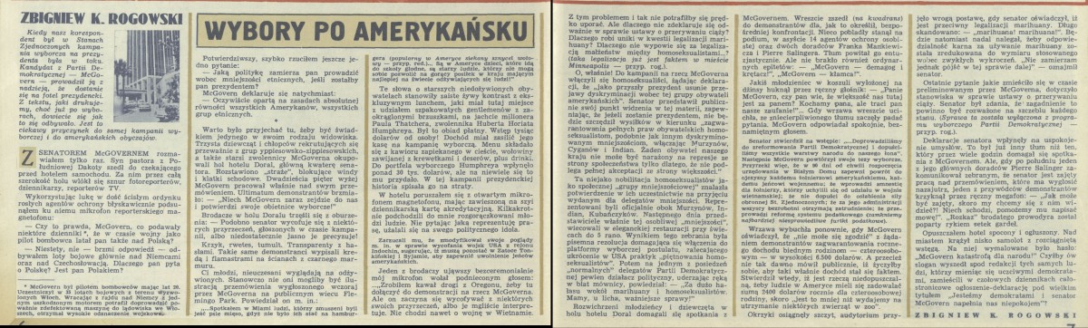 Archiwum / Korespondencja nr 1442 (48/1972) 59050/123969 Podziel się Tytuł Wybory po amerykańsku Autor Zbigniew K. Rogowski Kategoria Korespondencja Artykuł z numeru 1442 (48/1972) Data wydania 26 listopada 1972 Tagi wybory prezydenckie USA senator McGovern