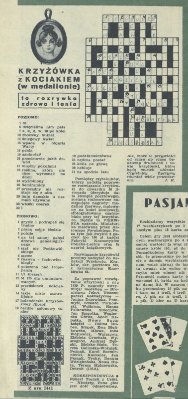 Archiwum / Krzyżówka z kociakiem nr 1442 (48/1972) 48/52 Podziel się Tytuł Krzyżówka z kociakiem (w medalionie) Rubryka Krzyżówka z kociakiem Artykuł z numeru 1442 (48/1972) Data wydania 26 listopada 1972 Tagi krzyżówka rozrywka