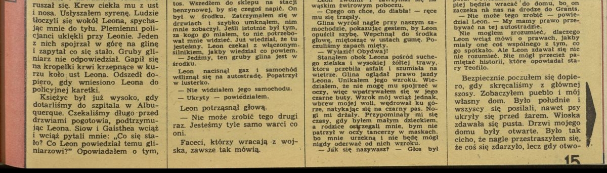 Archiwum / Opowiadanie nr 1895 (31/1981) 465/4314 Podziel się Tytuł Opowieść Tony'ego Autor Lesslie silko Kategoria Opowiadanie Artykuł z numeru 1895 (31/1981) Data wydania 2 sierpnia 1981 Tagi Rosen Indianie The Man to Send Rain clouds