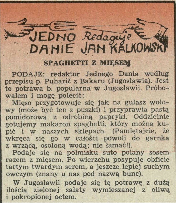 Archiwum / Jedno danie nr 1006 (29/1964) 3/7 Podziel się Tytuł Spaghetti z mięsem Autor Jan Kalkowski Rubryka Jedno danie Artykuł z numeru 1006 (29/1964) Data wydania 19 lipca 1964 Tagi gastronomia kulinaria przepis kulinarny kuchnia chorwacka makaron mięso gulasz