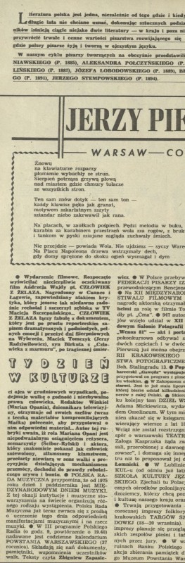 Archiwum / Poezja nr 1896 (32/1981) 65/144 Podziel się Tytuł [Poezja] Autor Jerzy Pietrakiewicz Kategoria Poezja Artykuł z numeru 1896 (32/1981) Data wydania 9 sierpnia 1981 Tagi Jerzy Pietrakiewicz poezja