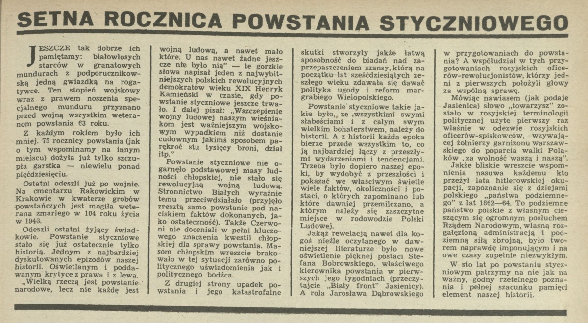 Archiwum / Artykuł nr 928 (03/1963) 85027/123969 Podziel się Tytuł Setna rocznica Powstania Styczniowego Kategoria Artykuł Artykuł z numeru 928 (3/1963) Data wydania 20 stycznia 1963