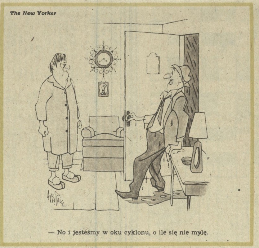 Archiwum / Historyjki obrazkowe nr 1896 (32/1981) 66/586 Podziel się Tytuł [Rysunek] Kategoria Historyjki obrazkowe Artykuł z numeru 1896 (32/1981) Data wydania 9 sierpnia 1981 Tagi The New Yorker