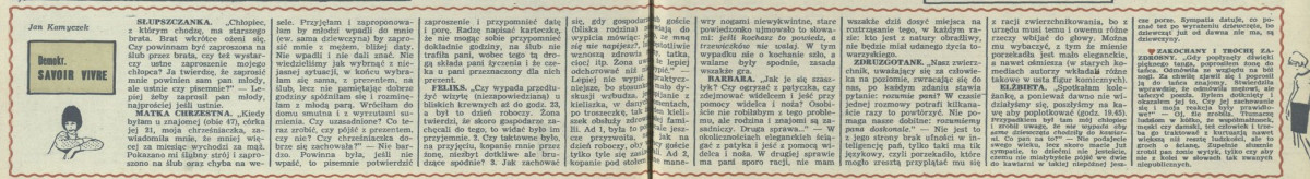 Archiwum / Demokratyczny savoir-vivre nr 1443 (49/1972) 198/208 Podziel się Tytuł Demokratyczny savoir-vivre Autor Jan Kamyczek Rubryka Demokratyczny savoir-vivre Artykuł z numeru 1443 (49/1972) Data wydania 3 grudnia 1972 Tagi dobre wychowanie kultura obyczaje bon-ton