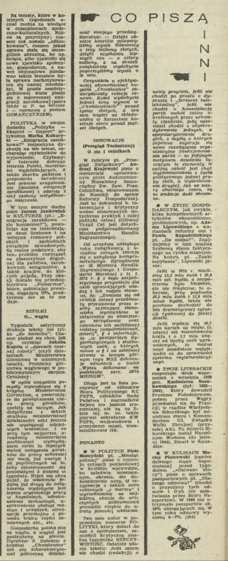 Archiwum / Co piszą inni nr 1899 (35/1981) 14/32 Podziel się Tytuł Co piszą inni Rubryka Co piszą inni Artykuł z numeru 1899 (35/1981) Data wydania 30 sierpnia 1981 Tagi Polityka innowacje Ponadto Szpilki