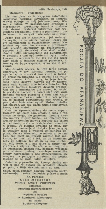 Archiwum / Pocztą od Afanasjewa nr 1543 (44/1974) 59077/123969 Podziel się Tytuł Pocztą do Afanasjewa Rubryka Pocztą od Afanasjewa Artykuł z numeru 1543 (44/1974) Data wydania 3 listopada 1974