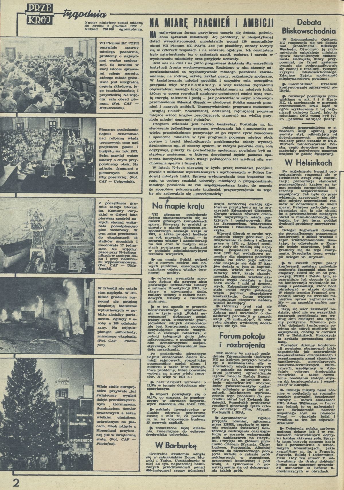 Archiwum / Przekrój tygodnia nr 1444 (50/1972) 31/44 Podziel się Tytuł Przekrój Tygodnia Rubryka Przekrój tygodnia Artykuł z numeru 1444 (50/1972) Data wydania 10 grudnia 1972 Tagi sprawy młodzieży debata Edward Gierek konferencja w Helsinkah