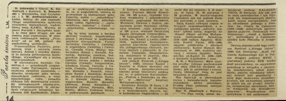 Archiwum / Poczta imion nr 1900 (36/1981) 78266/123969 Podziel się Tytuł Poczta imion Autor L.M. Rubryka Poczta imion Artykuł z numeru 1900 (36/1981) Data wydania 6 września 1981 Tagi imiona poczta imion