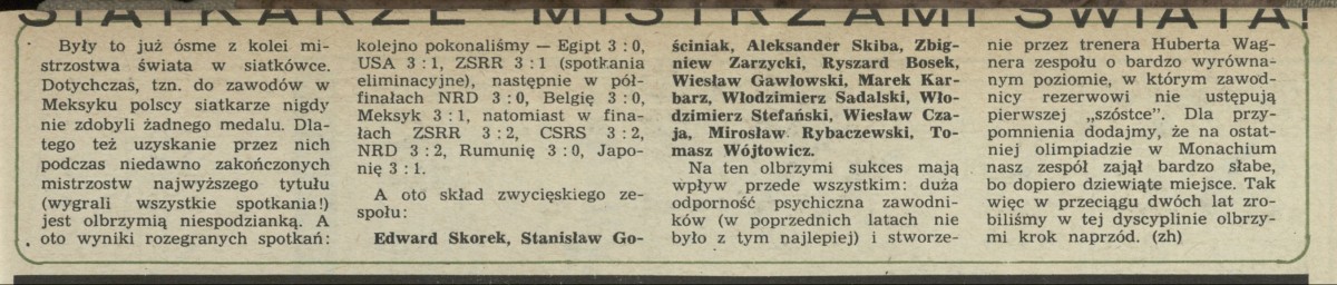 Archiwum / Sport nr 1544 (45/1974) 09/71 Podziel się Tytuł Siatkarze mistrzami świata Autor zh Rubryka Sport Artykuł z numeru 1544 (45/1974) Data wydania 10 listopada 1974