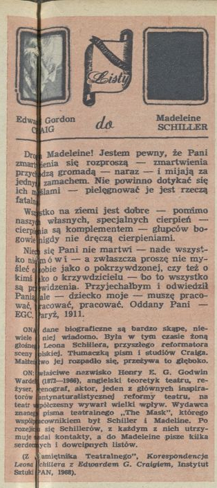 Archiwum / Listy sławnych ludzi nr 1444 (50/1972) 28/29 Podziel się Tytuł Listy Edwarda Gordona Craiga do Madeleine Schiller Rubryka Listy sławnych ludzi Artykuł z numeru 1444 (50/1972) Data wydania 10 grudnia 1972 Tagi Edward Gordon Craig Madeleine Schiller