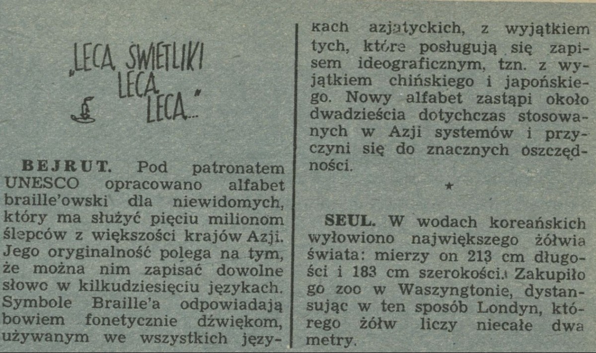 Archiwum / Lecą świetliki nr 798 (30/1960) 961/2403 Podziel się Tytuł Lecą świetliki, lecą, lecą Rubryka Lecą świetliki Artykuł z numeru 798 (30/1960) Data wydania 22 lipca 1960