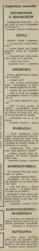 Archiwum / Najkrótsze nowelki nr 798 (30/1960) 32887/123969 Podziel się Tytuł Najkrótsze nowelki Rubryka Najkrótsze nowelki Artykuł z numeru 798 (30/1960) Data wydania 22 lipca 1960